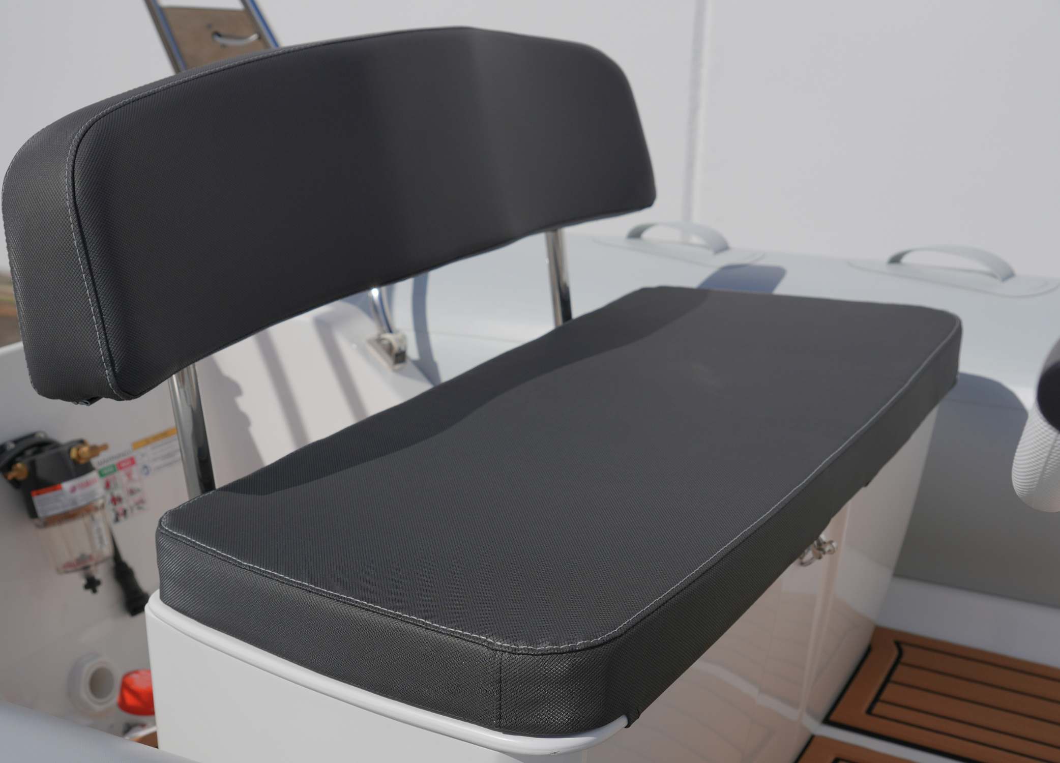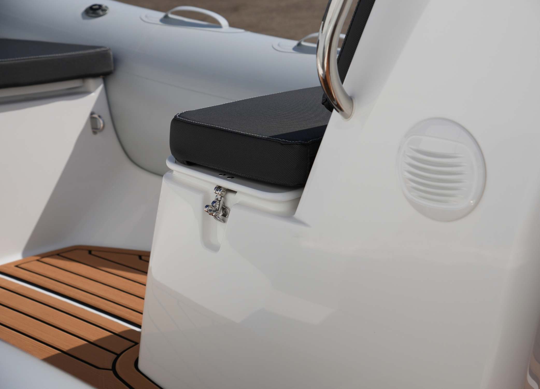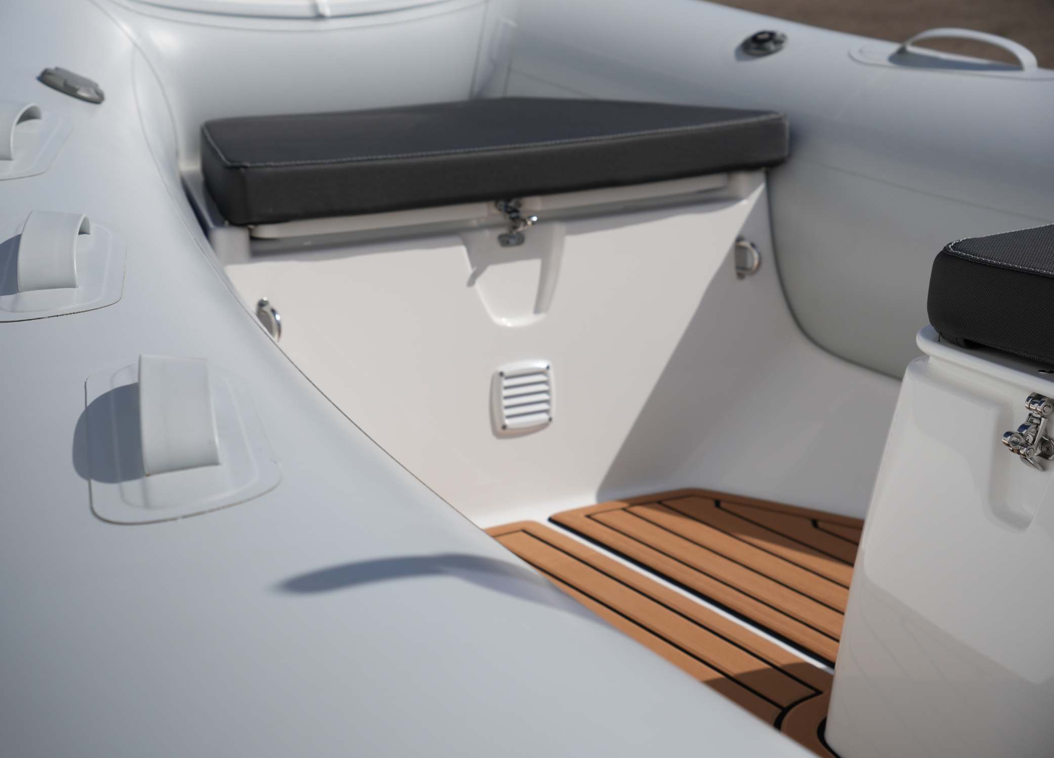 Incredibly lightweight, sleek and stable, we are proud to present the Grand S470 for sale, in stock and available now. This lightweight and spacious open tender boat has an incredibly practical and space-efficient internal layout. With light grey hypalon tubes and a deep-v fibreglass hull, this small multipurpose RIB boat is fitted with a ski arch and finished with teak SeaDek flooring and diamanté carbon Spradling Upholstery. This tender boat or runabout RIB is manufactured in Europe and crafted for adventure.