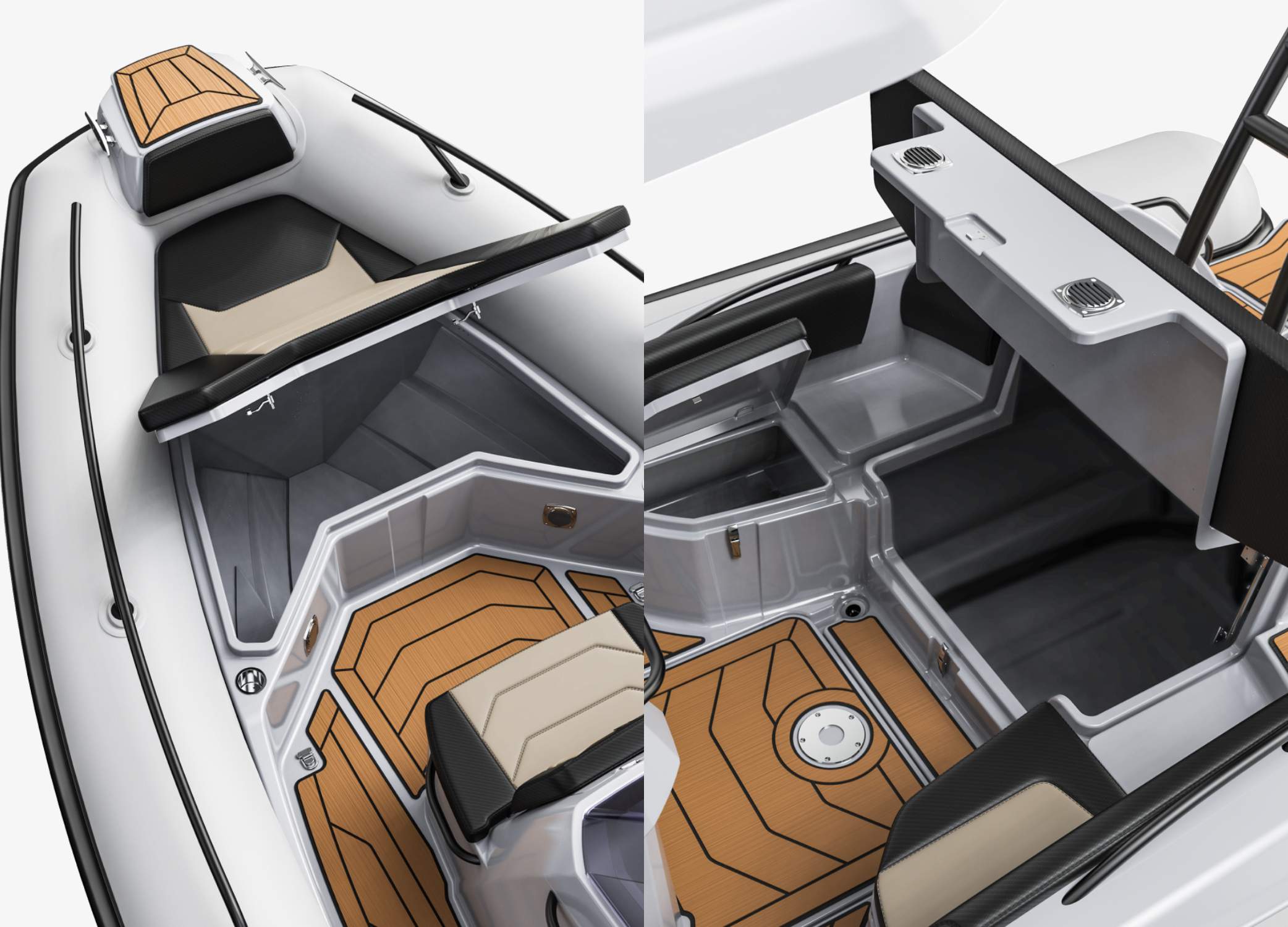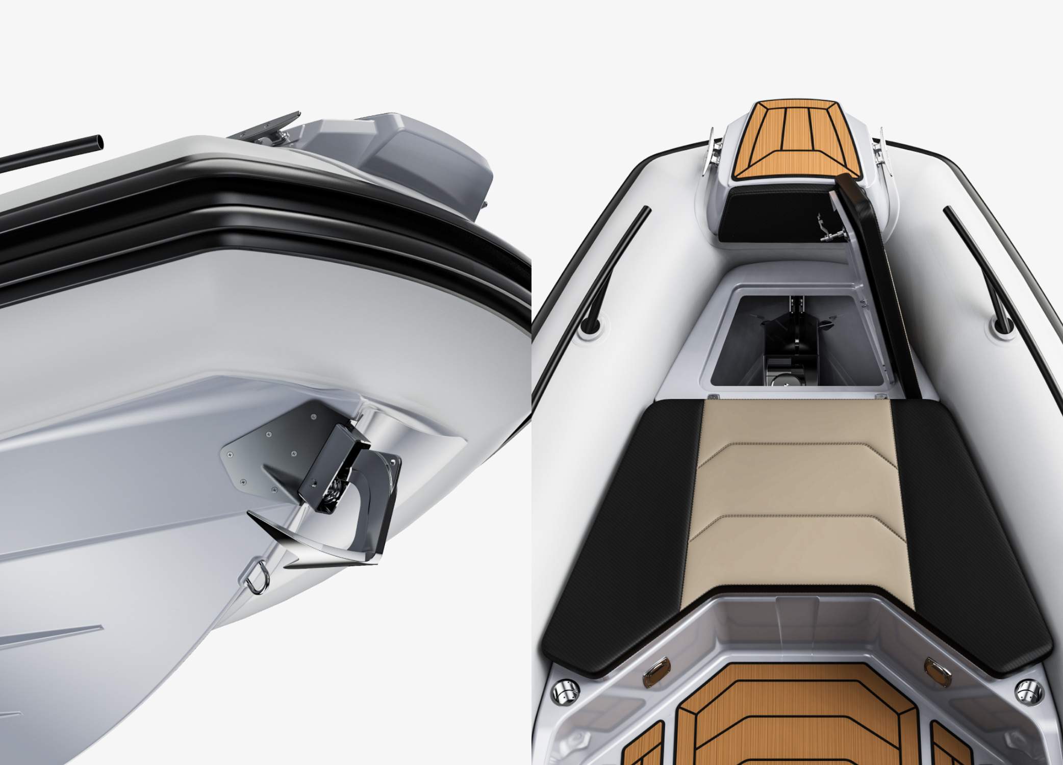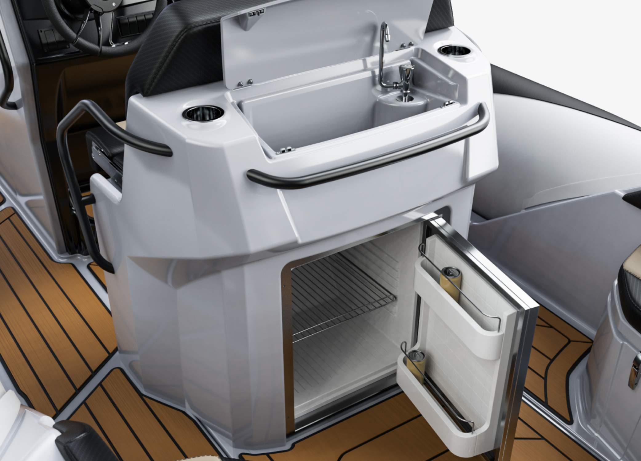 Adjust this cruiser craft to your lifestyle with personal customisations, including a removable table, fridge, freshwater shower/sink/faucet set and more. For those looking for a RIB boat that comfortably handles offshore water conditions while also providing stability and space to relax outdoors, there is no better choice.