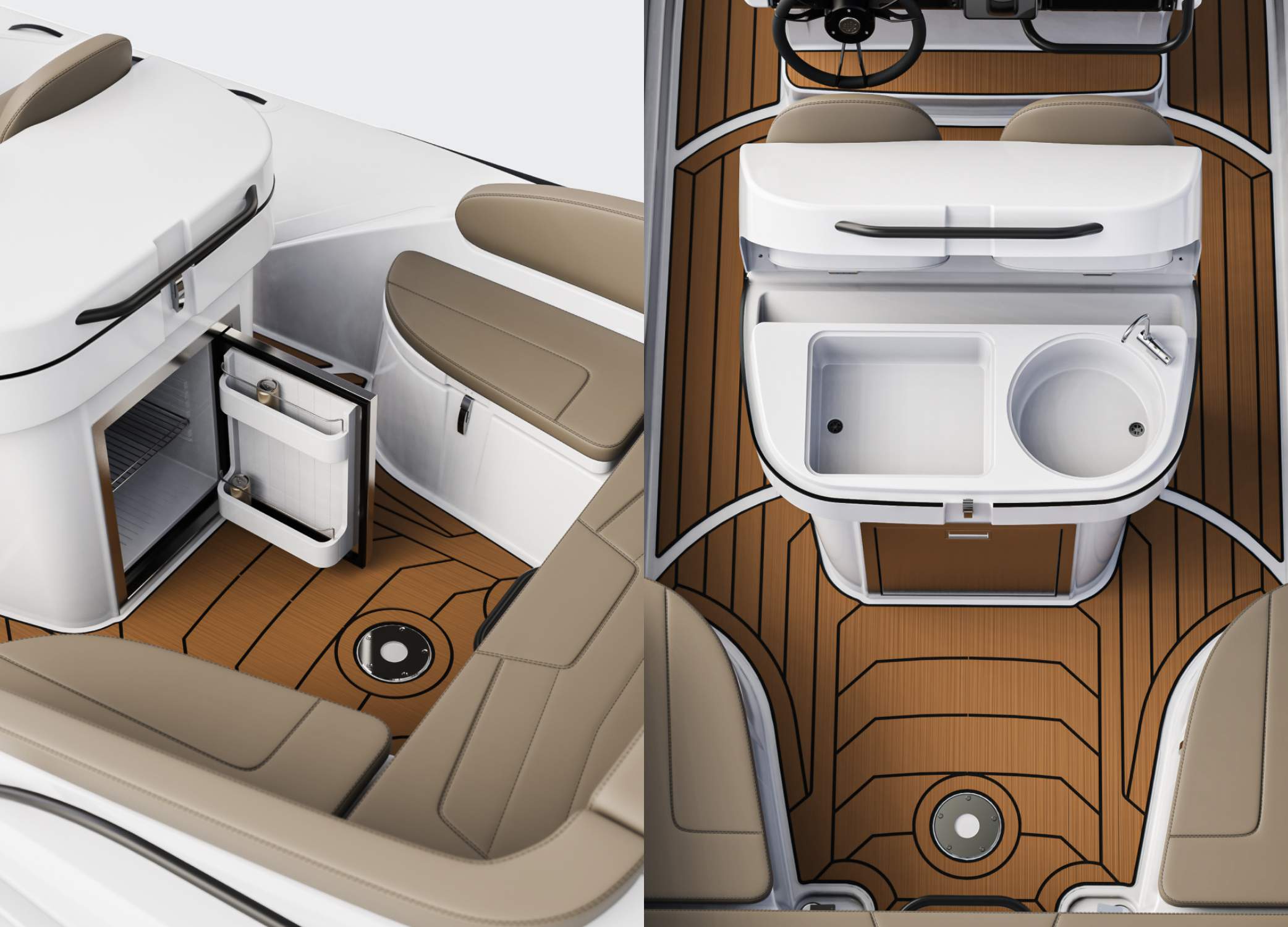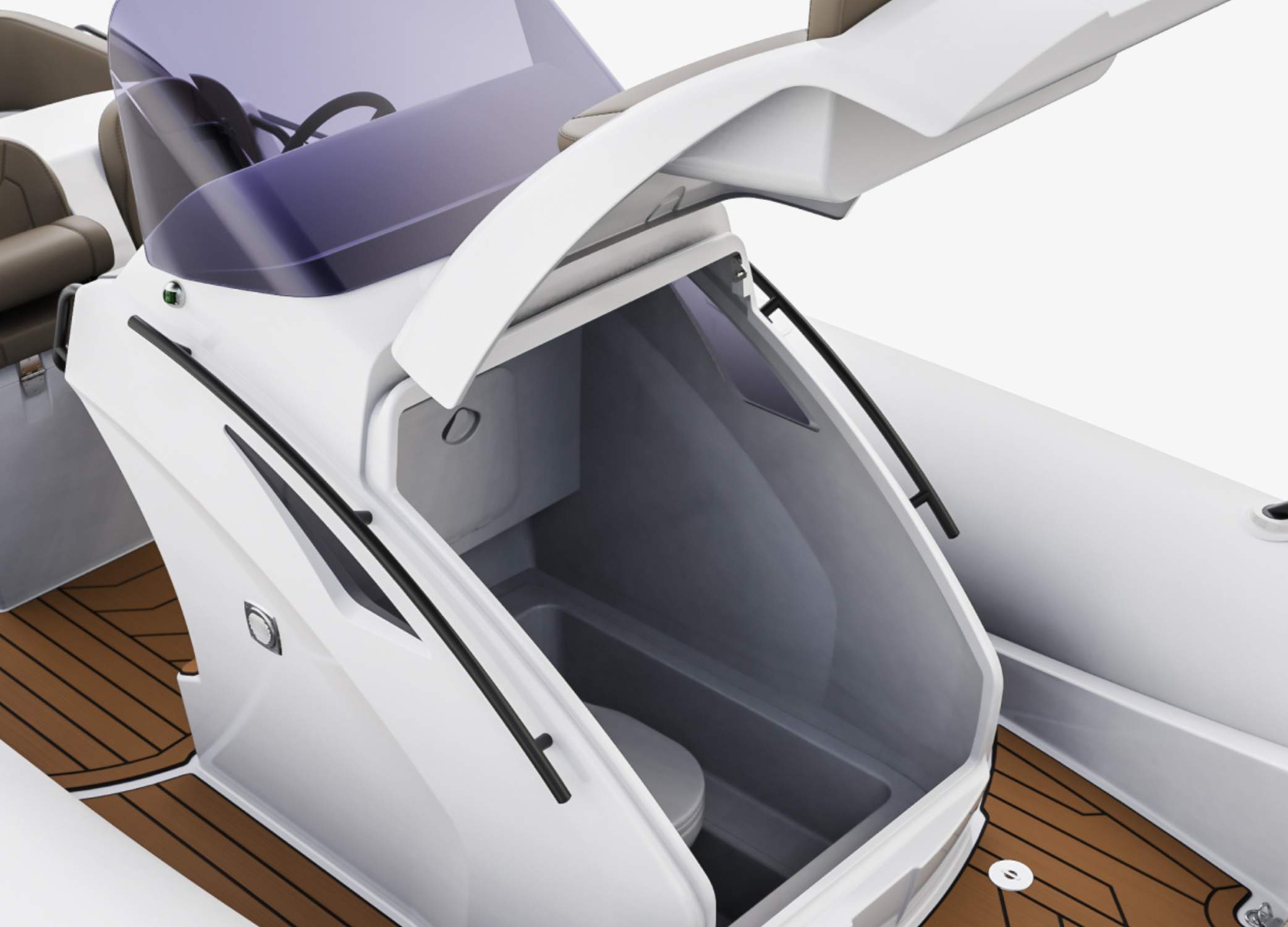 For longer trips on the water, passengers can find comfort in the fitted electric toilet with holding tank, situated underneath the central console.Â
