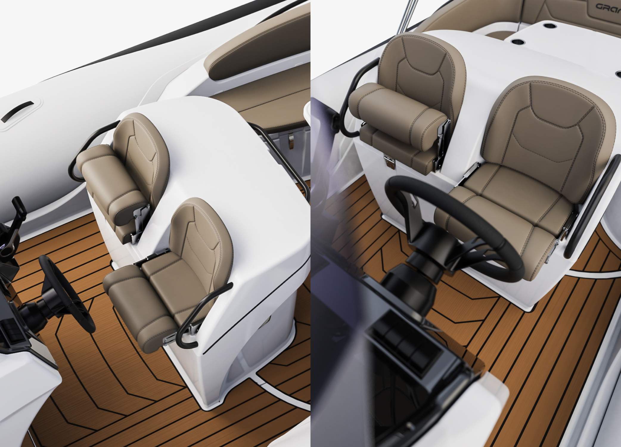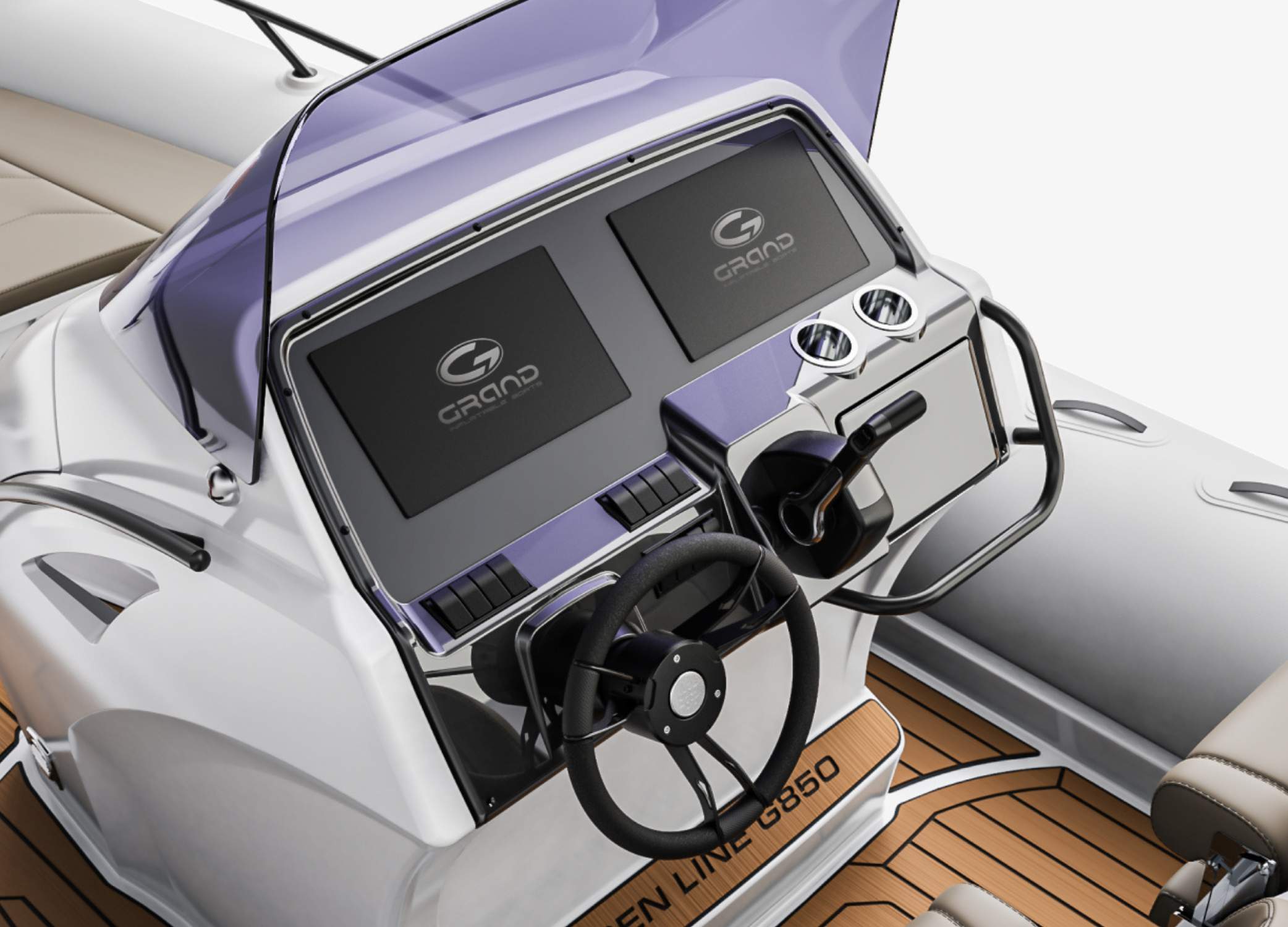 Moulded in-steps allow for easy and safe access on and off the boat. With the option of twin engine installation, the hypalon-tubed Grand G850 is defined by its size and power, as well the comfort it provides for safe navigation across distances. The premium watercraft is perfect for making memories with family and exploring offshore in comfort and style.