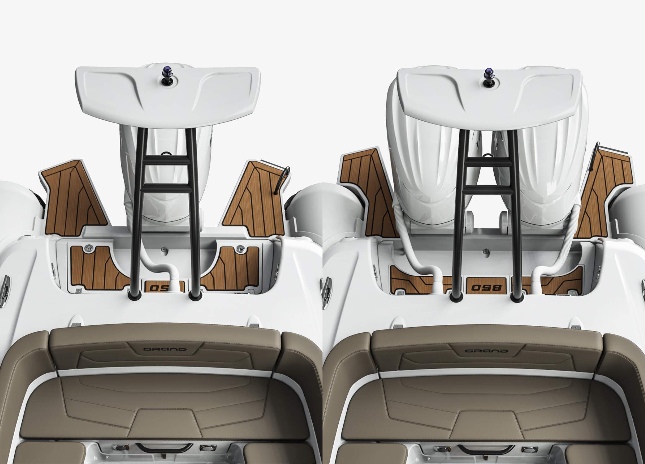 Suitable for twin engine installation and joy stick technology, power your adventure with up to 400HP on the Grand G850, enabling a high-performance adventure. The addition of the ski arch is perfect for towing or wakeboarding fun.