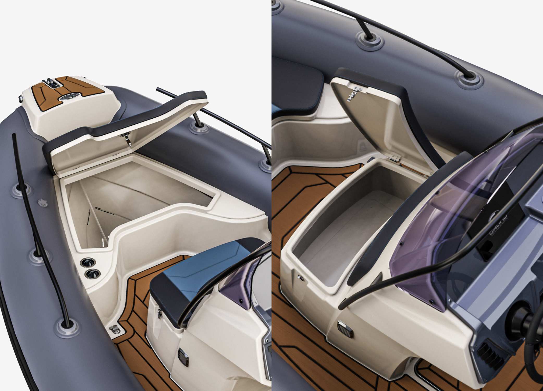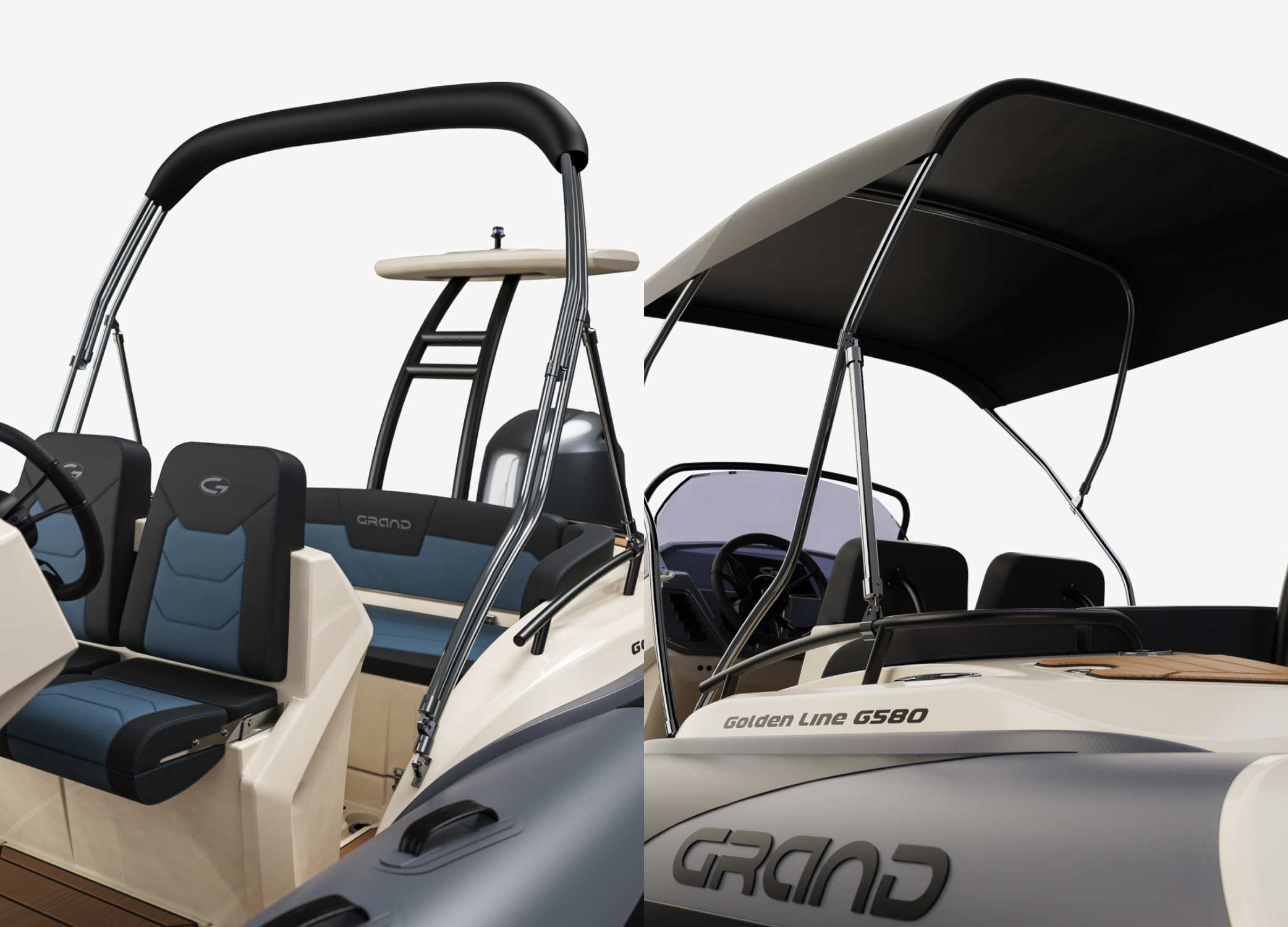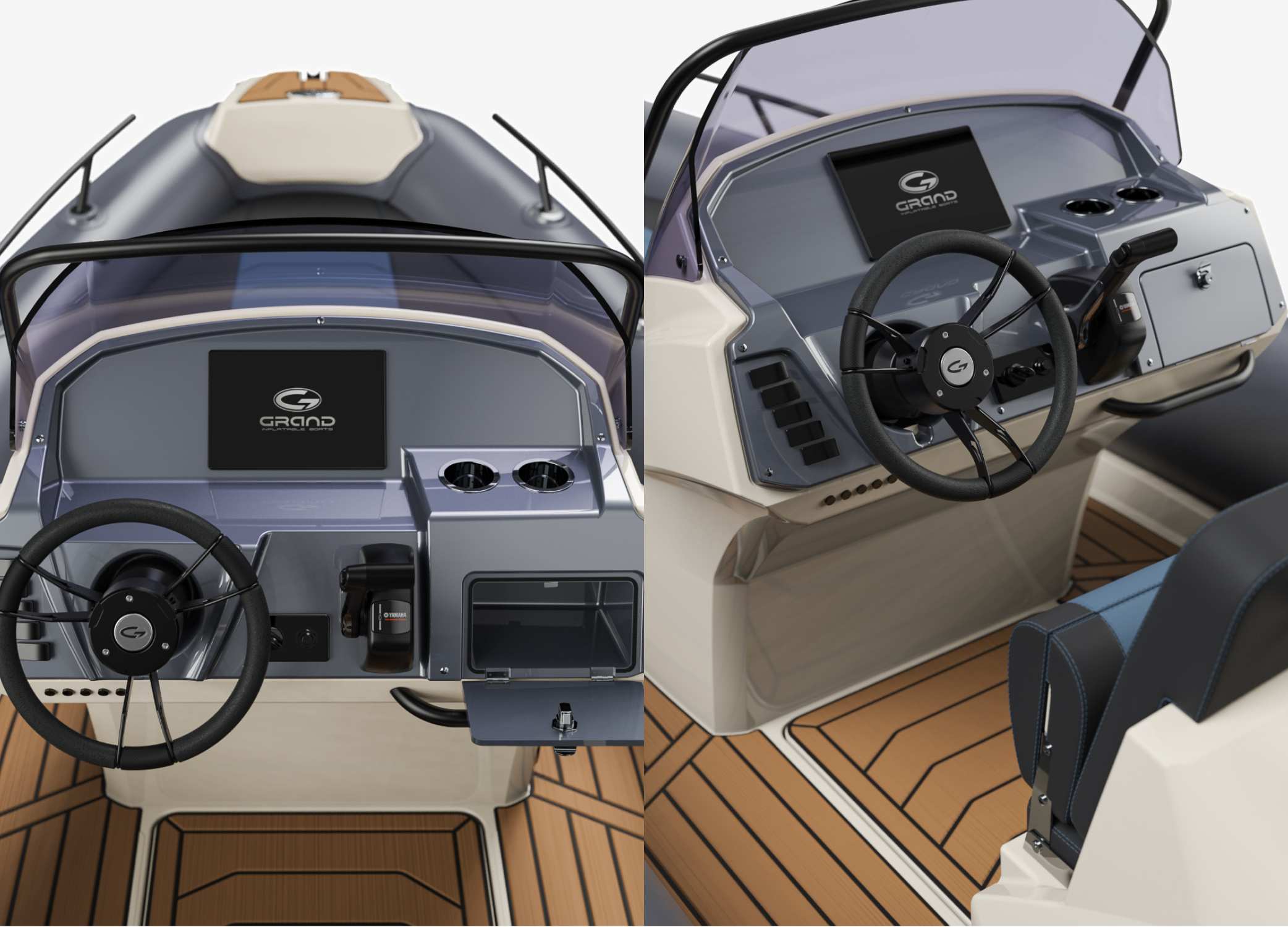 You’ll find plenty of storage capacity throughout the vessel, making it perfect for day trips and outings, and a wide range of equipment and accessories that can be customised to suit your needs. The Grand G580’s distinctive features and dynamic shape contouring with its sweeping lines make this a midsize RIB that is as luxurious and stylish as it is powerful, practical and reliable.