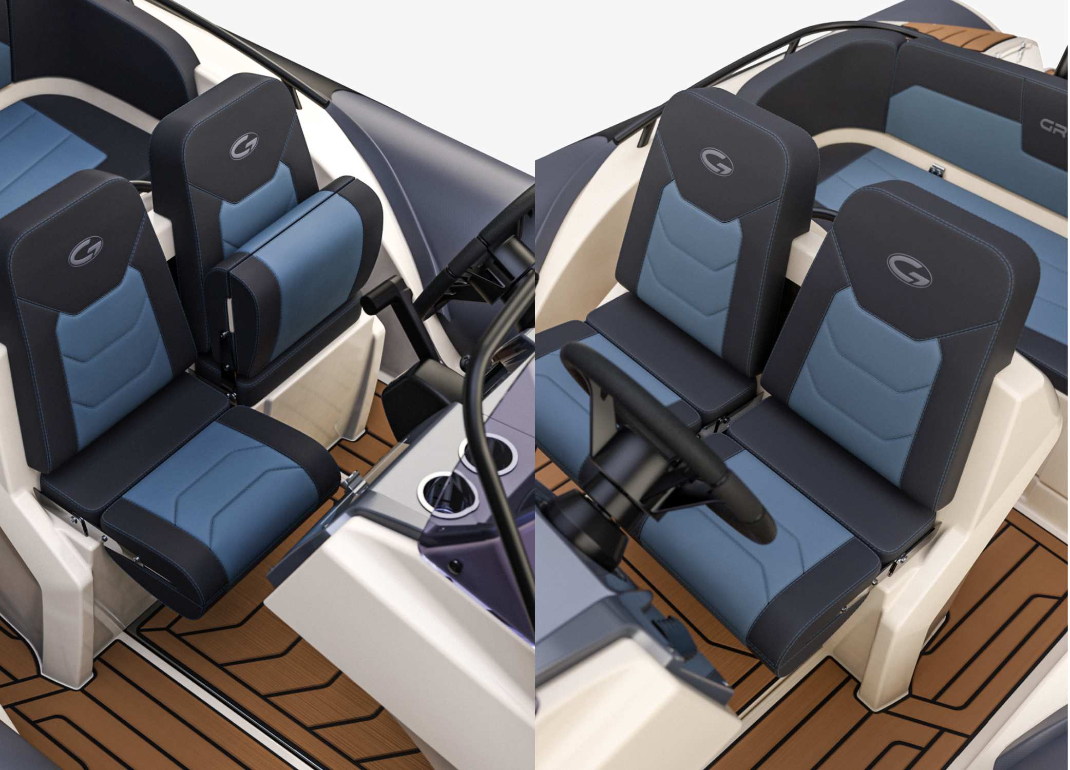 A synthesis of smooth styling, sweeping lines and ergonomics define the unique identity of the Grand G580. This highly functional 5.8 metre rigid inflatable boat is the perfect choice for family cruising and wakeboarding. With a centre console and ample, comfortable seating throughout, this is a boat that offers a stable and smooth ride for family boating days.