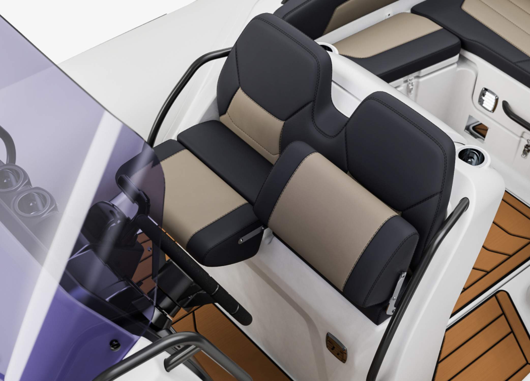 Sit back in comfort at the helm with deep-set cushioned seating that creates a comfortable, shock-absorbing base to drive from. Raise the base of the seat upwards to lean against the cushion whilst standing at the helm.Â