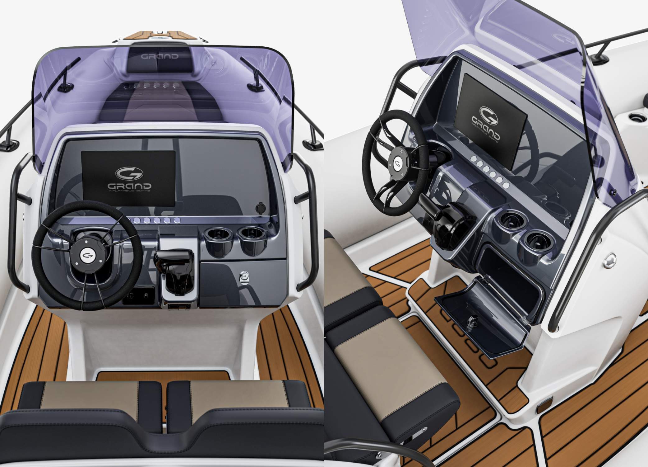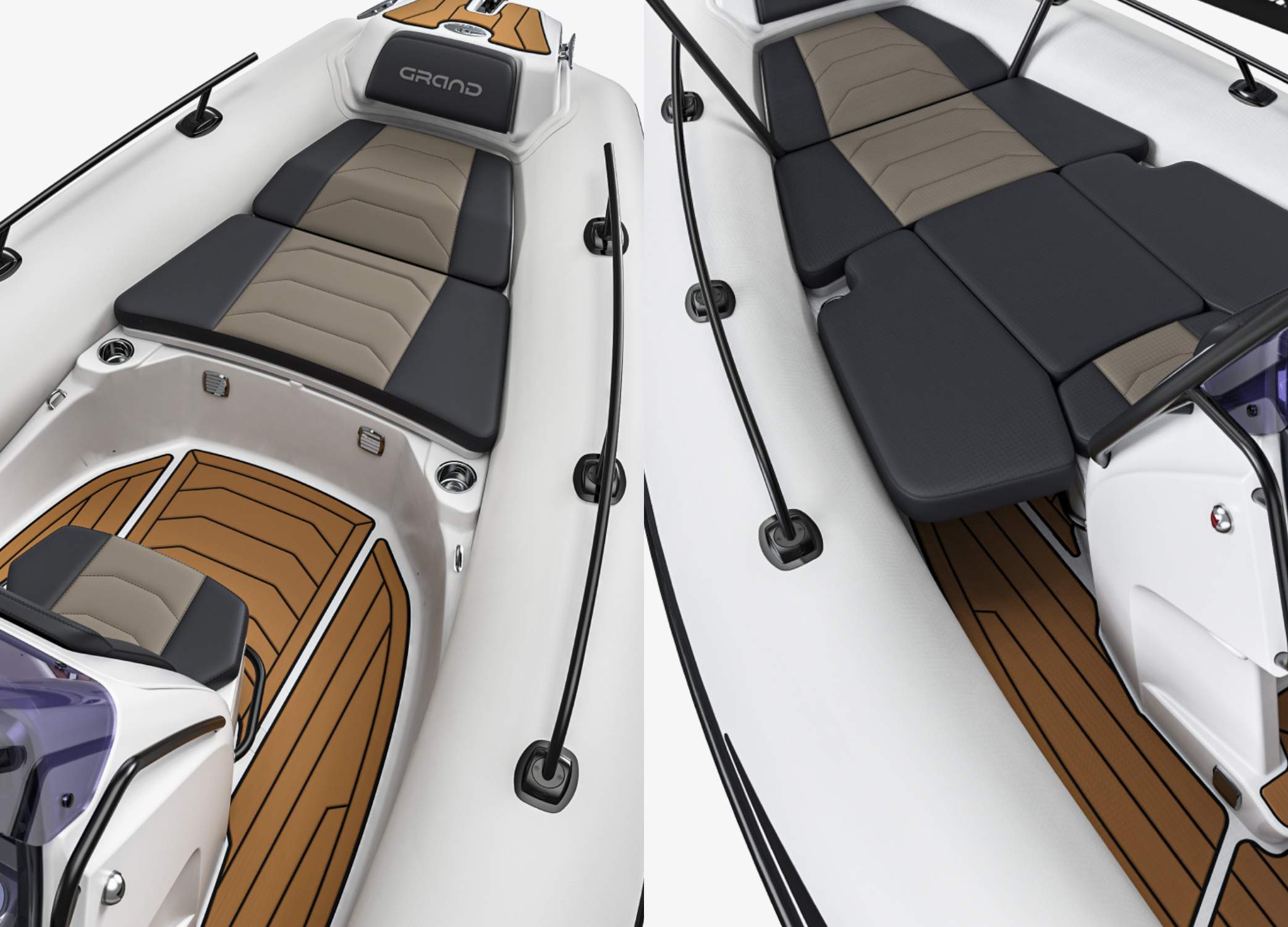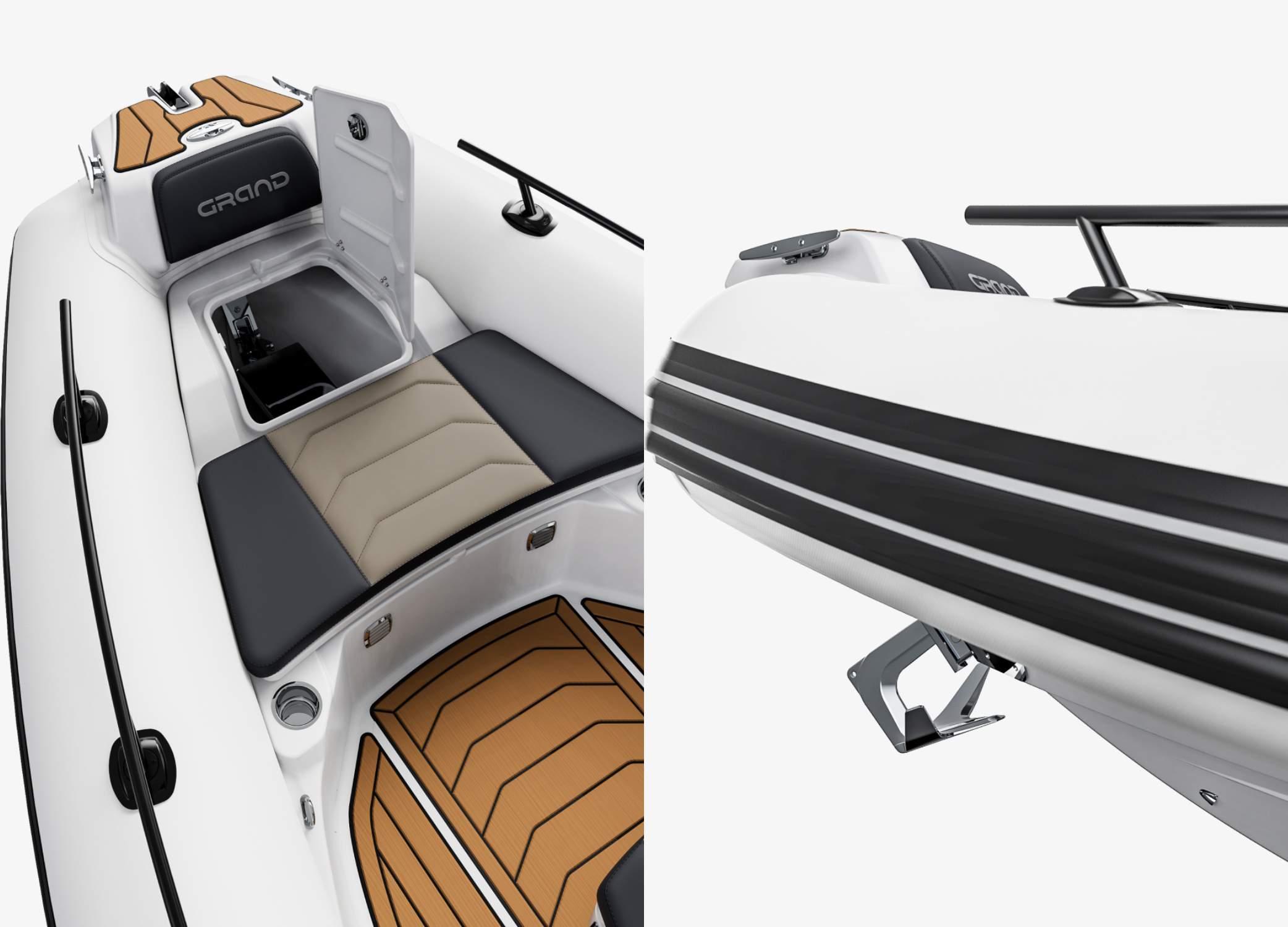 The latest model in our lineup of premium centre console rigid inflatable boats, the Grand G680 combines modern luxury and hull technicality in a fresh new stylish design. At 6.8m in length and with a power rating up to 200HP, the Grand G680 has combined the premium styling of Grand’s midsize models with a refreshing, contemporary touch.