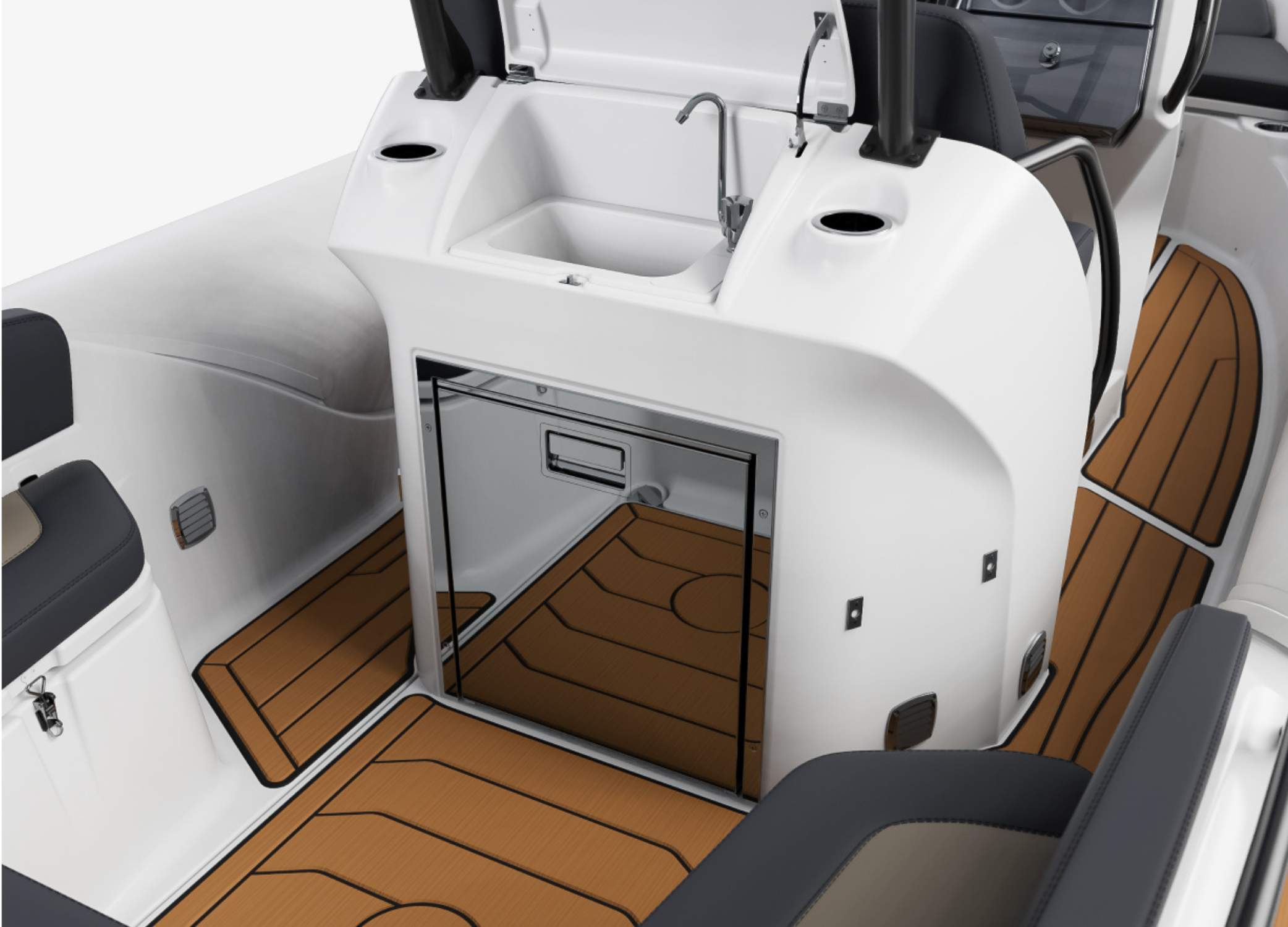 Have all of the information you need right there at your fingertips with a centre console dashboard display that can be entirely tailored to your needs, from dual Garmin Chart Plotters, to Scanstrut Phone Chargers, Fusion Radio & Speaker System. Thanks to the centre console design, you’ll enjoy comfortable space around the drivers seats and maximum manoeuvrability in and around the helm station. Plus, keep items safe and out of the way with the spacious console glovebox.