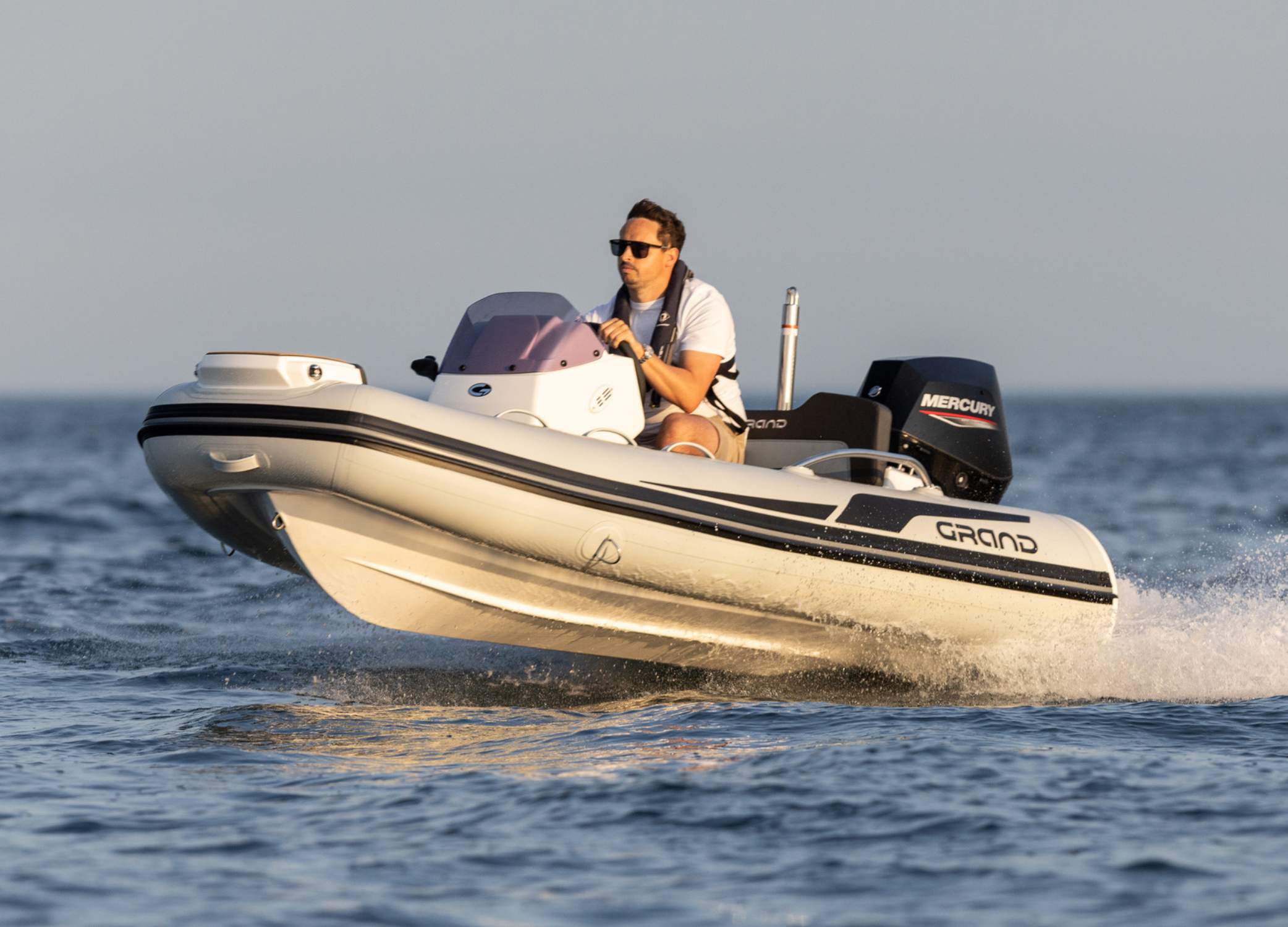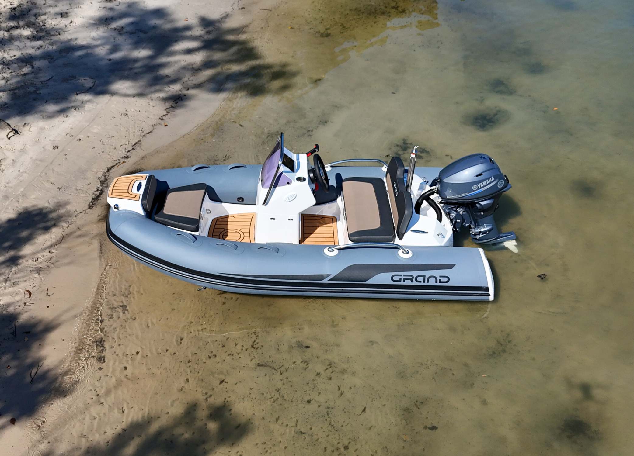 Compact but deluxe, this 3.2 metre (11 ft) inflatable tender boat can be powered up to 40HP and continues to serve worldwide as an elite tender to luxury yachts. While small but stable in size, the conscientious design of the Grand G340 ensures that interior space is used effectively, and is enhanced by modern comforts.Â