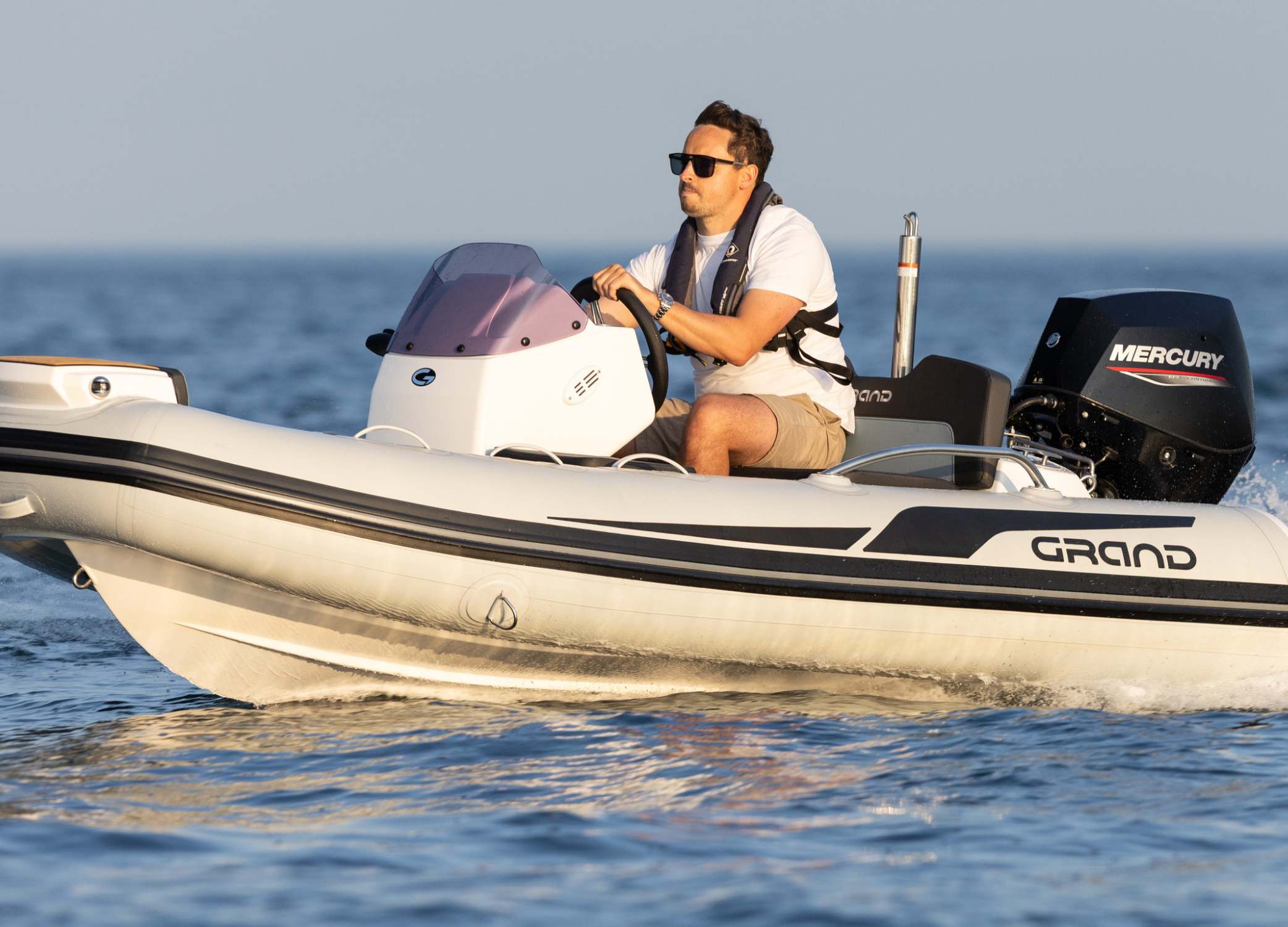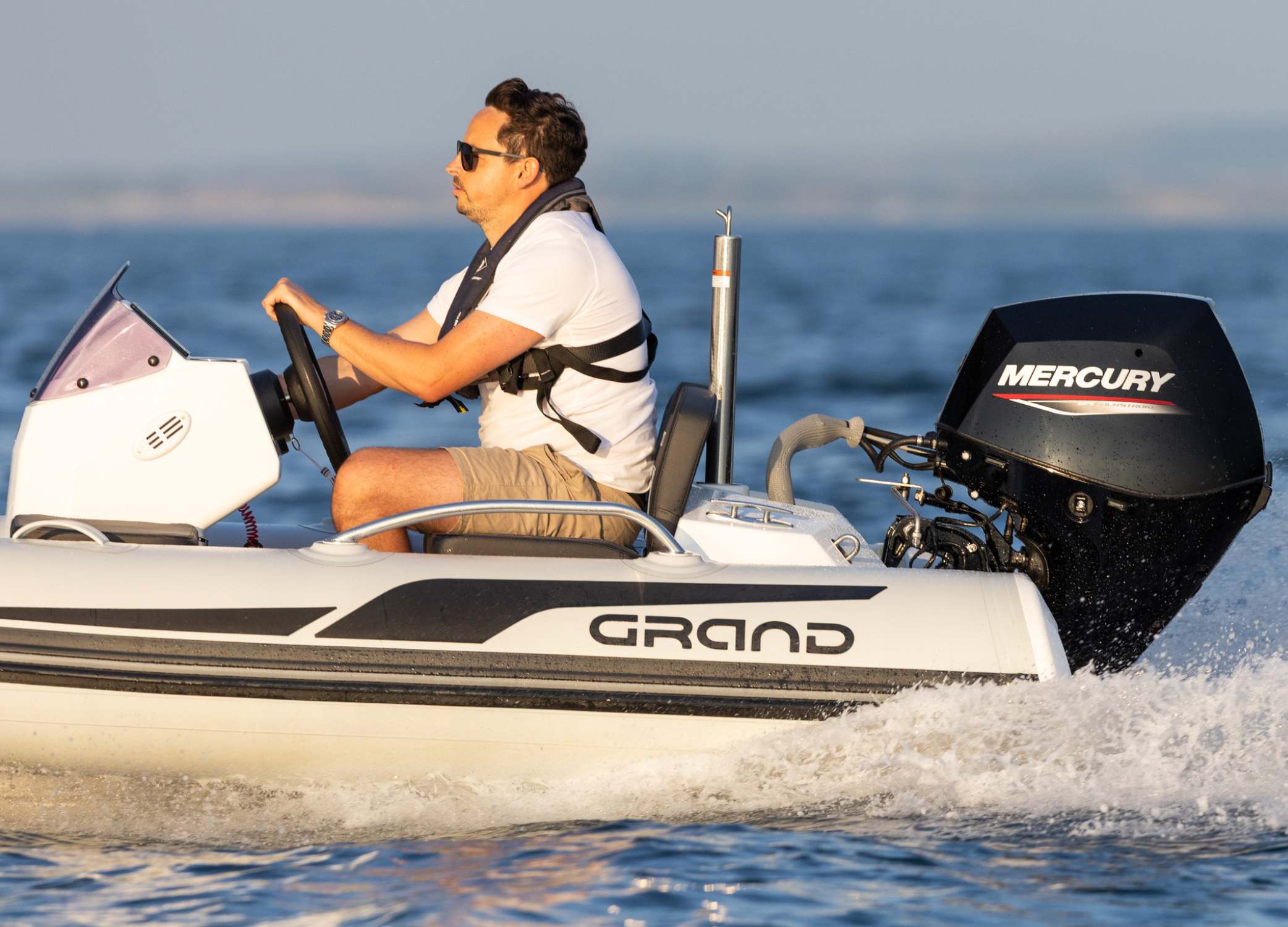 Compact but deluxe, this 3.2 metre/11 ft inflatable tender boat can be powered up to 40HP and continues to serve worldwide as an elite tender to luxury yachts. While small but stable in size, the conscientious design of the Grand G340 ensures that interior space is used effectively, and is enhanced by modern comforts.Â