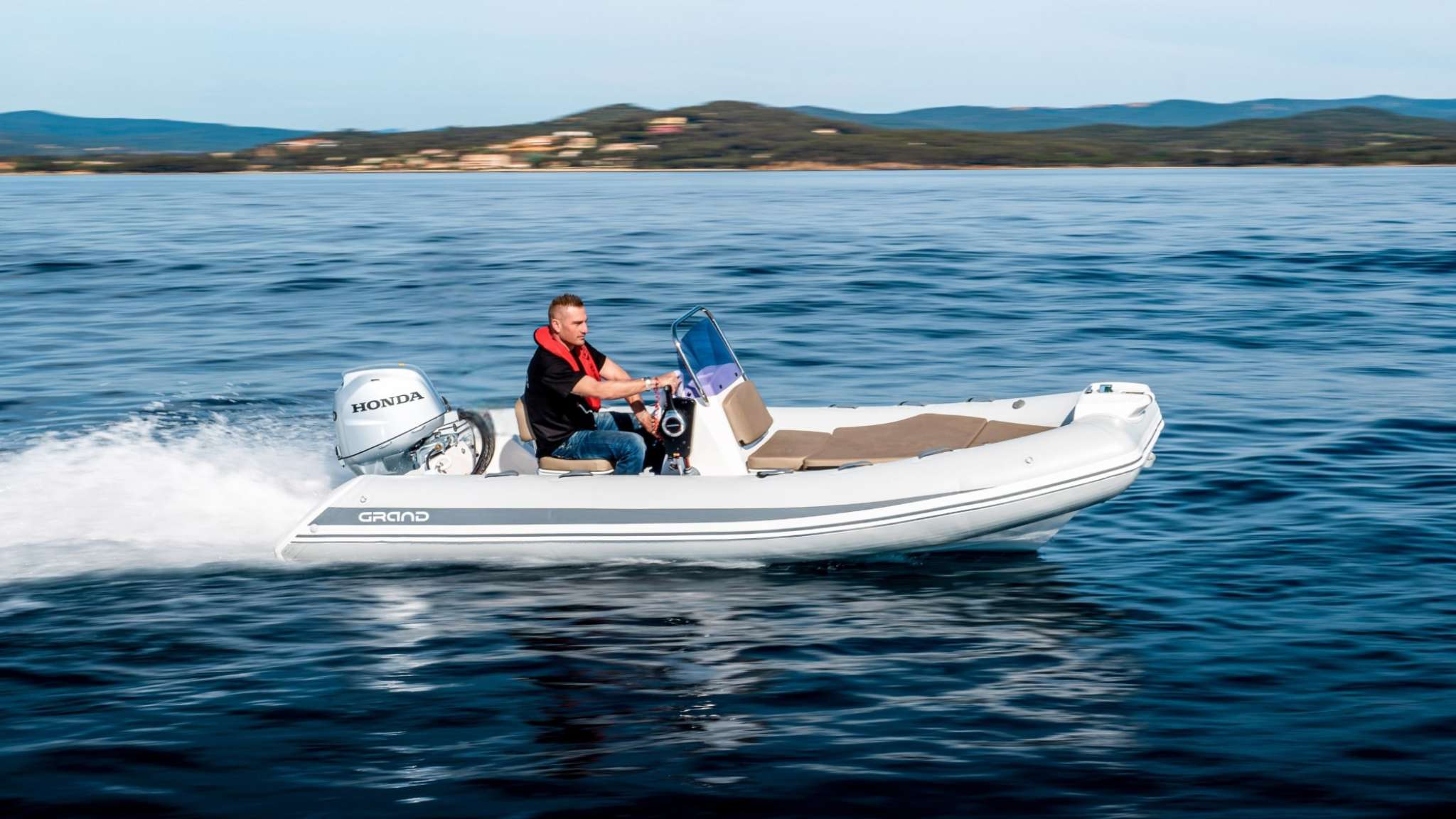 A small but functional craft, the Grand S470 can be customised in its design and layout to ensure it suits your lifestyle and beyond. Choose between three models: the Base Model (an open tender with removable seats and oars), the Sport Model (with a jockey console and complete steering system for an agile and exciting ride), or the Deluxe Model (featuring a premium console and double helm seat). Whether you’re looking for a rigid inflatable boat for fishing, high-speed fun or for travelling to/from a larger boat or yacht, you can easily adapt the compact but versatile Grand S470 to suit your goals.Â